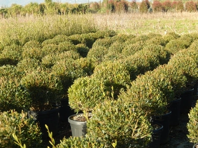 Phillyrea angustifolia heeft een bossige, dichte groeivorm en daardoor uitermate geschikt om als bol te snoeien. Een zeer leuke vervanger voor de Buxusbol die nog zeer onbekend is in Nederland! Hij heeft smalle, lancetvormige, donkergroene tot grijsgroene, leerachtige bladeren van ongeveer 3-4 cm. De bladeren lijken heel erg op de bladeren van een Olijf In mei en juni bloeit hij met geurende, groenachtig witte bloempjes. De bloemen zijn echter wel onopvallend. Zeer goed in vorm te snoeien. Zeewindtolerant